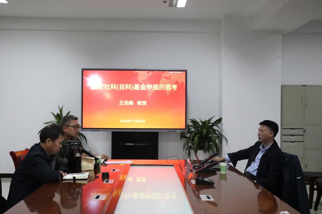 邀请湖南师范大学王兆峰教授,在学院会议室做题为《国家社科(自科)基金申报思考》讲座。报告会由金春平副院长主持,相关专业科研骨干教师、博士、硕士研究生参加了报告会。