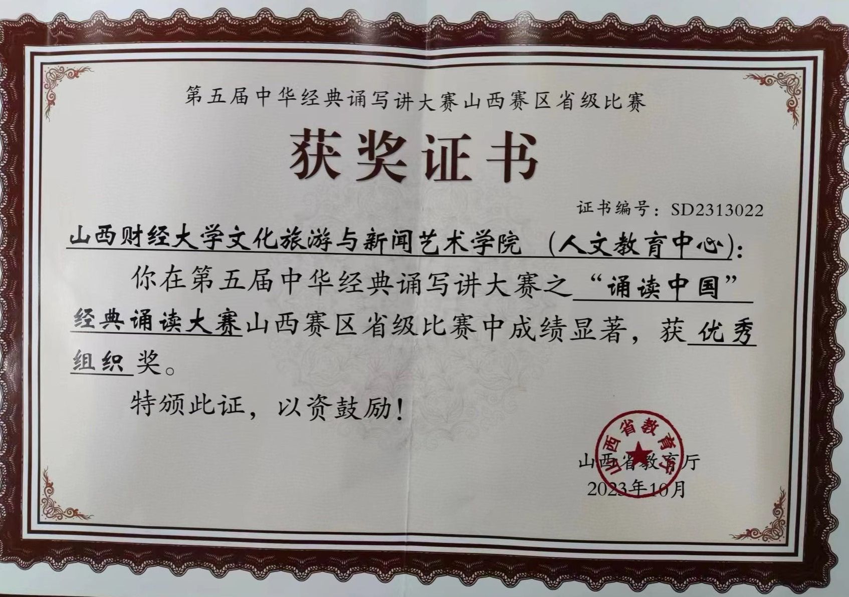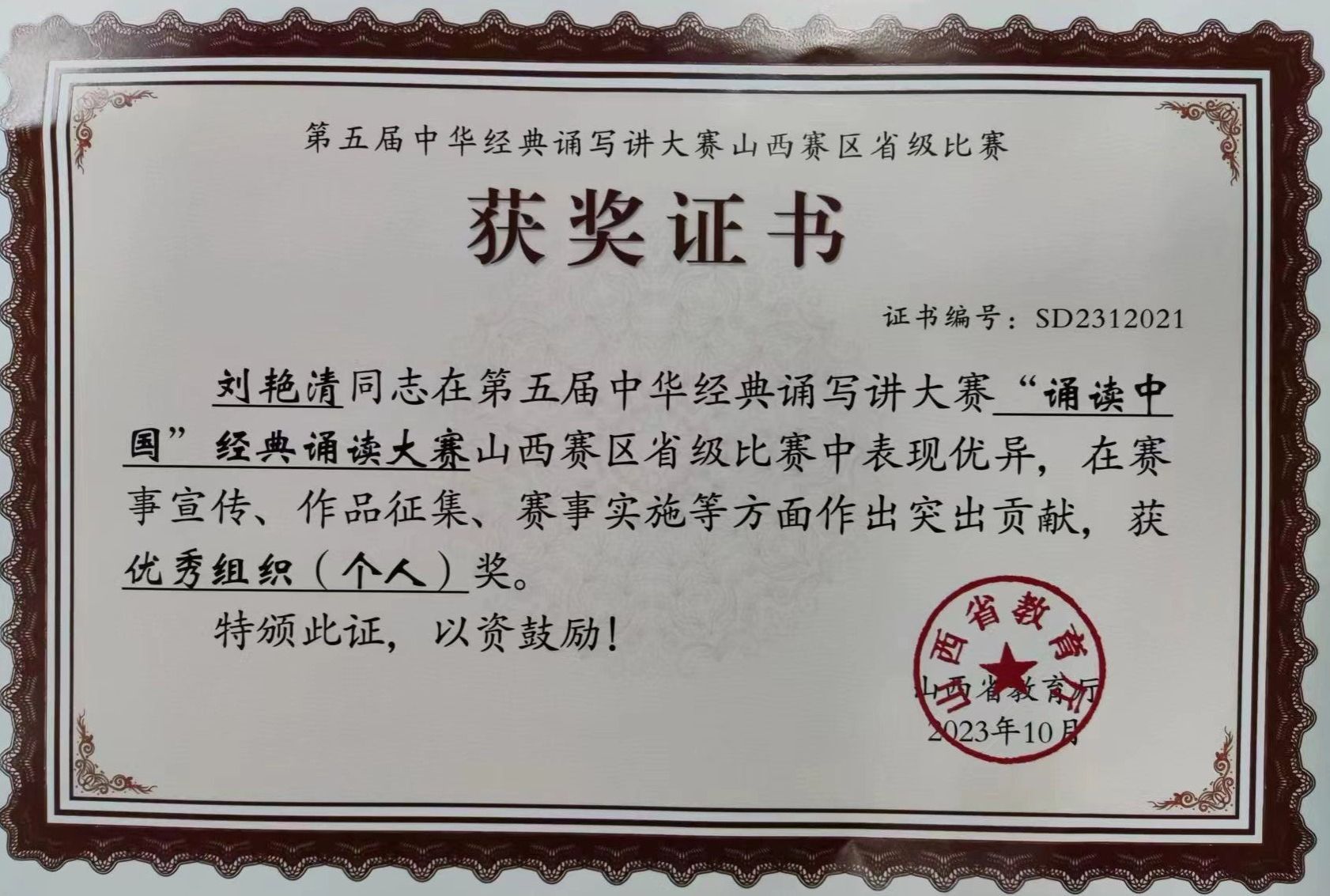 10月12日,山西省教育厅公布了第五届中华经典诵写讲大赛山西赛区获奖名单。a片直播网