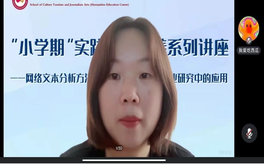 贾老师从微观的角度入手,为同学们提供了学术研究的新方法,即网络文本分析法,她从什么是网络文本分析法,如何进行网络文本分析,怎样获取文本资料进行讲授,并向同学们展示了详细的操作步骤。