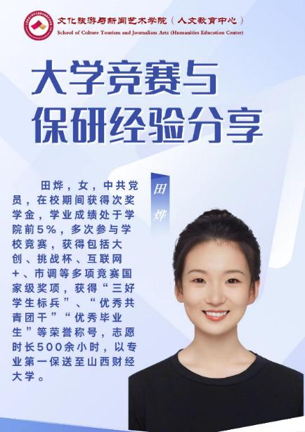 2025年6月30日,在笃行201阶教,面向2023级旅游管理、2023级文化产业管理本科生,成功举办了以“大学竞赛与保研经验分享”为主题的小学期课程分享会。在全面推进人才强国战略的时代背景下,竞赛指导已成为提升专业能力、激发创新活力的重要引擎。近期,全国多地多领域通过“以赛促学、以赛促教、以赛促创”模式,构建起覆盖教育、政务、产业的多维竞赛生态,为人才培养注入新动能。
