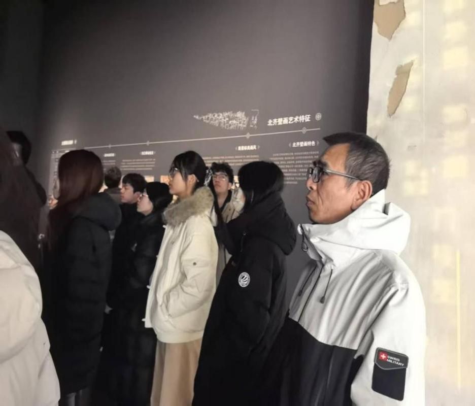 本次调查通过“沉浸参观+动手体验”的创新形式,实现了知识传授与价值引领的有机结合,为同学们上了一堂生动的文化自信公开课。同学们到达后,跟着讲解员开启了1000多年前的探索之旅。大家先去一号厅,仔细观赏了九原岗墓壁画,其中升天图与狩猎图尤为精彩,仿佛能听到箭镞射出的响声;接着去了二号厅,欣赏了北齐徐显秀大将的墓遗址与墓壁画;最后到了三号厅,欣赏了北齐权臣娄叡墓壁画七人宾客图。