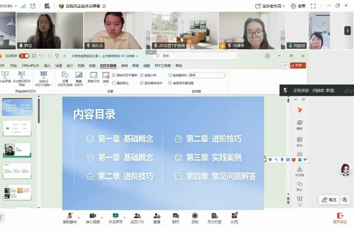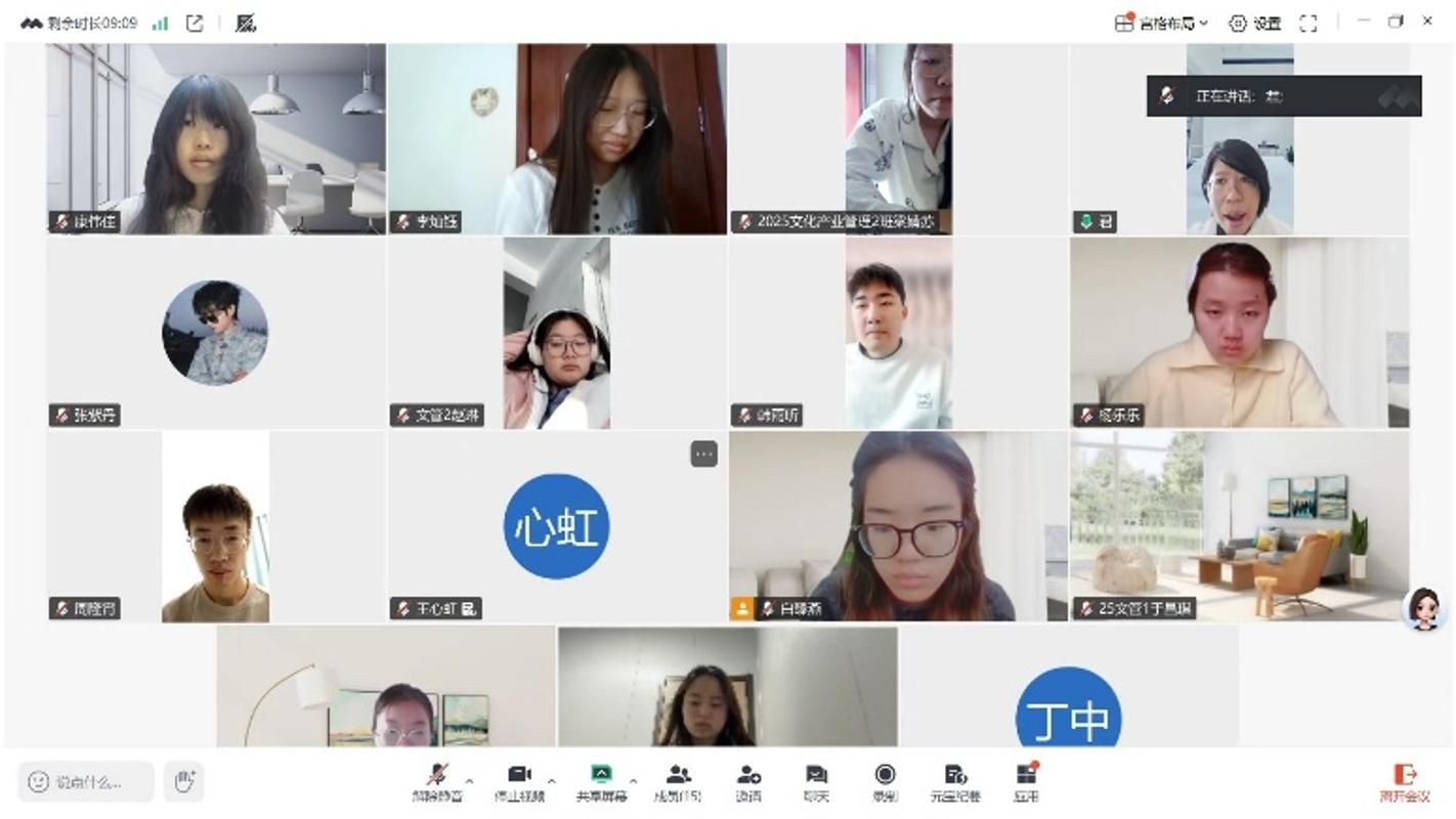 分享过程中,闫老师聚焦“文化创意如何转化为具备竞争力的参赛项目”“团队协作中如何实现专业优势互补”等核心问题,引导学生进行深度思考,鼓励大家立足文化产业发展趋势,将专业知识融入参赛项目,14名同学全程专注聆听、细致记录,在互动交流环节积极提问,就项目选题方向、答辩逻辑梳理等具体问题与闫老师展开深入探讨,线上学习氛围热烈浓厚。