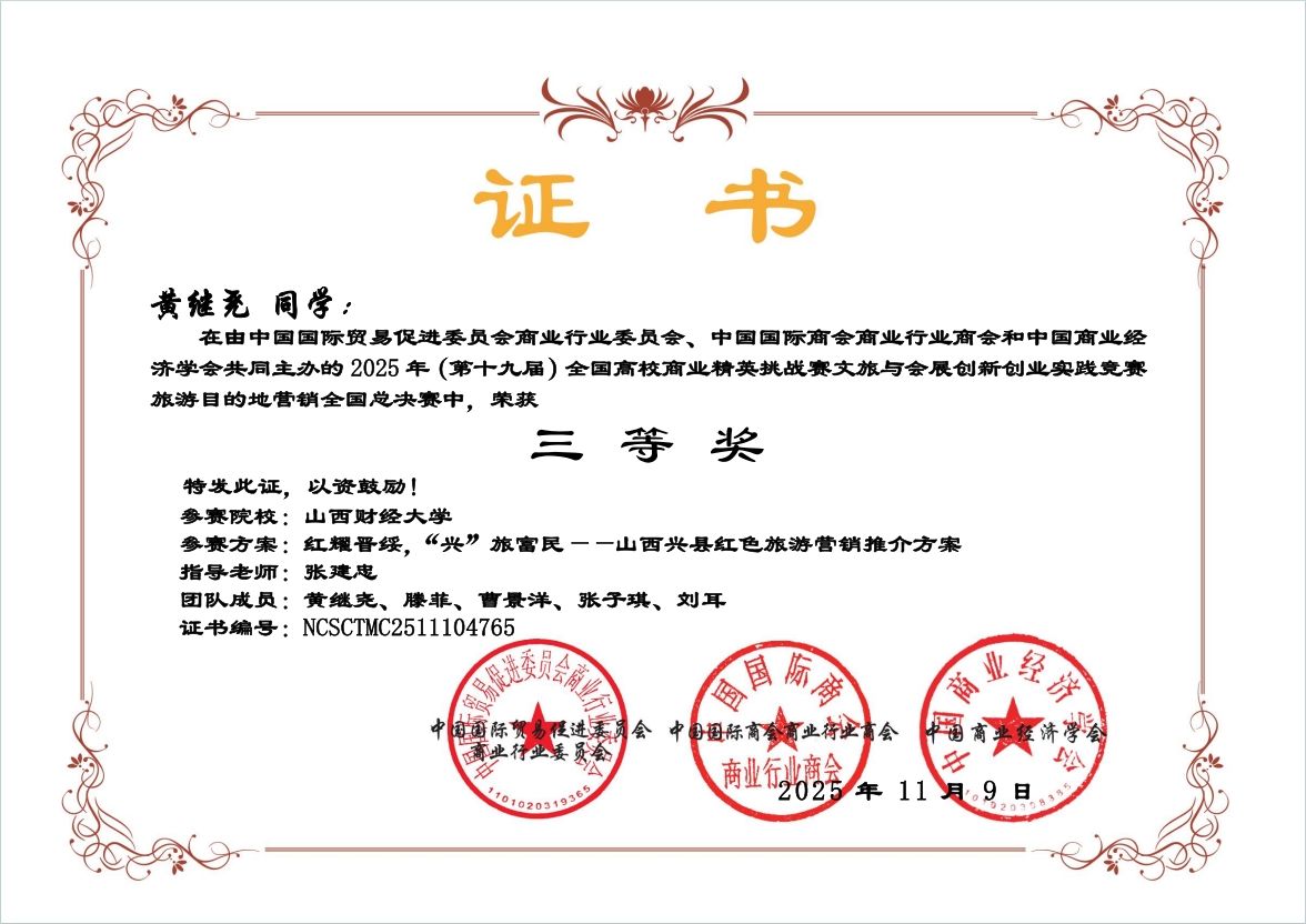 全国高校商业精英挑战赛文旅与会展创新创业实践竞赛是由中国国际贸易促进委员会商业行业委员会、中国国际商会商业行业商会以及中国商业经济学会联合主办。该竞赛入选教育部认可的84项全国大学生学科竞赛名录(2025),在国内具有广泛影响力和公信力,旨在为全国高校学子搭建文旅会展领域创新创业的交流与展示平台,鼓励青年学子以专业视角挖掘文旅价值、用创意赋能行业发展。本届国赛吸引了来自全国26个省(区、市)600余所高校近3000支代表队参与角逐,竞争异常激烈。